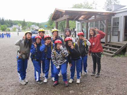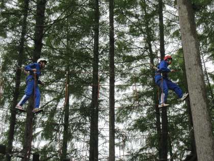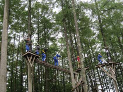 地上8mの高さでのハイエレメントにチャレンジです。写真では伝わりませんが、楽しそうな「怖い」という声が響いたいます。