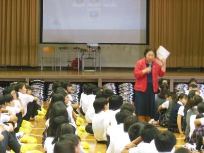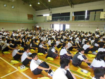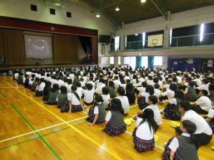 本日は薬剤師の大内さんに来校していただき、1年生対象の薬物乱用防止教室が開かれました。