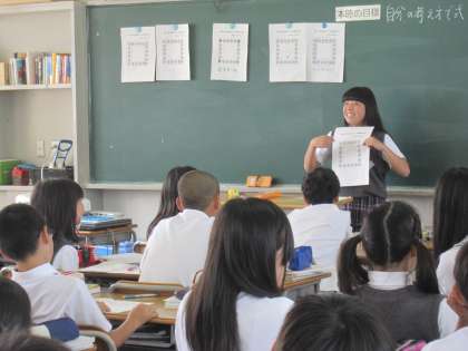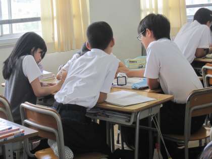 小学校での取組みの成果もあり、考えを交流する場面、発表を聞く姿勢など、生徒たちがとてもよく頑張れている授業でした。