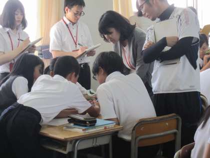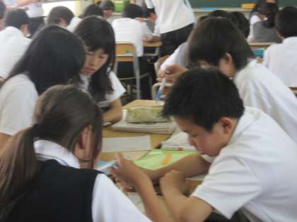 小畑先生の説明を聞く姿勢もとてもいいです。ペアー学習の後、班での活動の様子です。