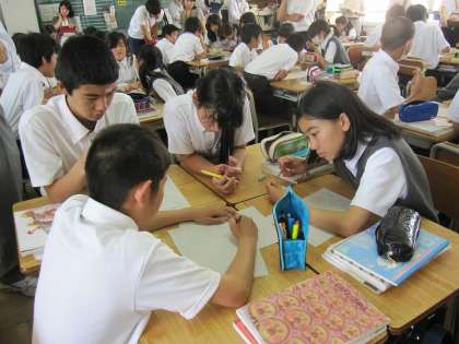 聞く側が拍手で応援したり、説明内容がわかりにくい場合には、そのことが素直に言えています。生徒が互いに認め合えていることが感じられます。