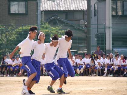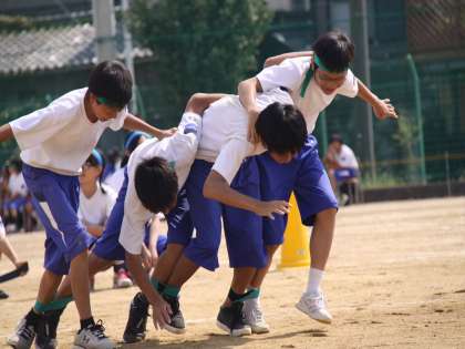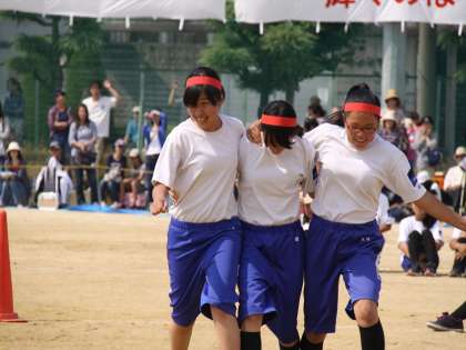 昨年度から実施している増脚レースの様子です。2人3脚から始まり、3人、4人と人数が増えていきます。