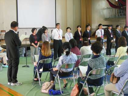 学習参観に続いて、体育館でPTA総会と学校オリエンテーションを行いました。
