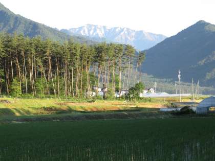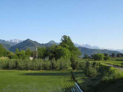 安曇野の朝、修学旅行3日目も雲ひとつない快晴です。