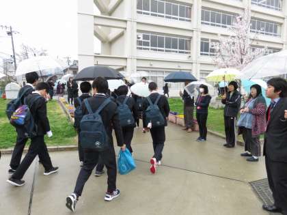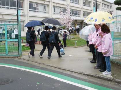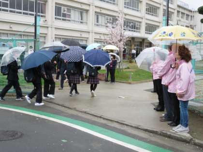 あいにくの雨でしたが、笑顔であいさつを返してくれる生徒も多く、初めて参加されたPTAの新会長は、「生徒の様子がわかり参加して良かったです」と話されていました。