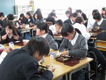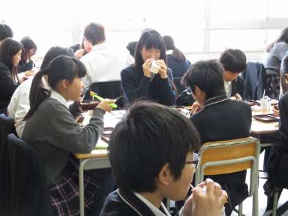 何人かの生徒に感想を聞きましたが、小学校と違うけど中学校の給食も美味しいとか、皆が同じ量なので中学校の方がいいという声もありました。