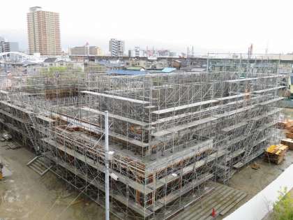 ※写真は今日の体育館工事の様子です。3階部分まで工事が進んでいます。