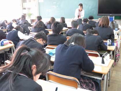 それぞれの学年の授業の様子を見ましたが、授業を受ける際の約束やノートやファイルの使い方、成績の付け方などについて丁寧に説明されていました。
