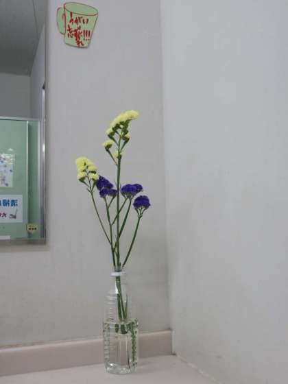 2階のトイレの手洗い場に置かれている花です。数日前からありますが、心が和みます。