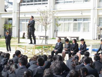 異動先の高校での話や今年卒業し高校生になった生徒の話から、南郷中学校の生徒に思いのこもったメッセージをいただきました。