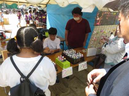 南郷中バドミントン部は、例年同様に使用済みのシャトルを加工したキーホルダーの販売です。