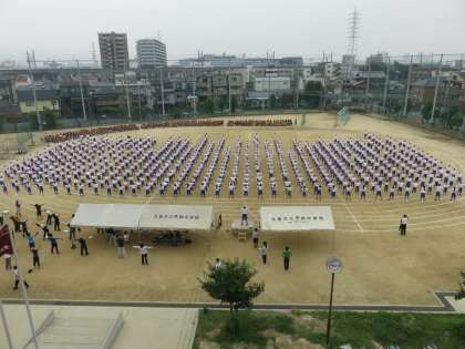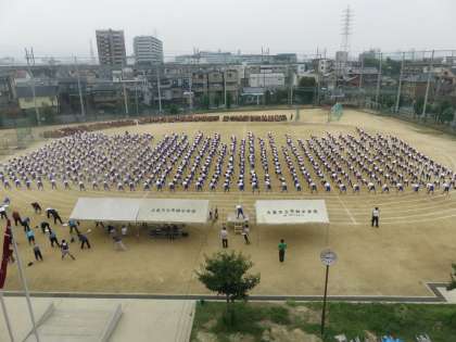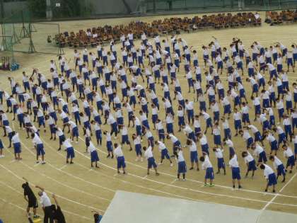 ラジオ体操の様子です。体育委員を中心によくできていると思います。