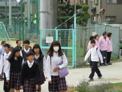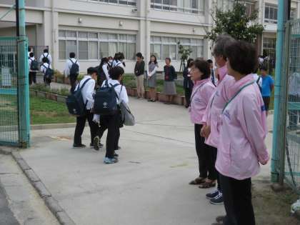少し風の冷たさを感じる朝ですが、生徒たちは元気な声であいさつを返しています。