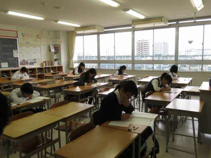 これ以外に、市民会館を会場に市教育委員会が英語力の向上の取組みの一環として実施するジャンプ検定(英検3級)を受検している3年生28名もいます。