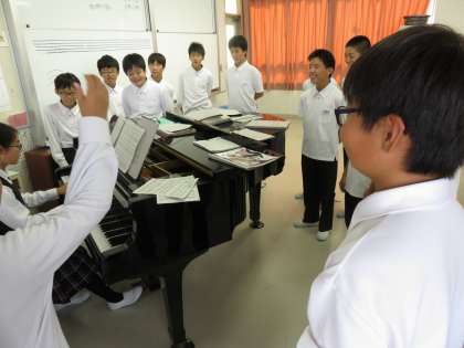 1年生の音楽はコーラスコンクールに向けた練習が中心になっています。