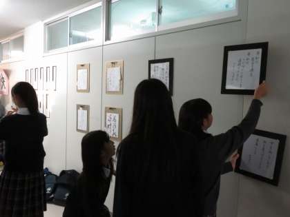 東館4階の視聴覚室2の教室では、各学年の国語の作品と書道部の作品展示が行われています。
