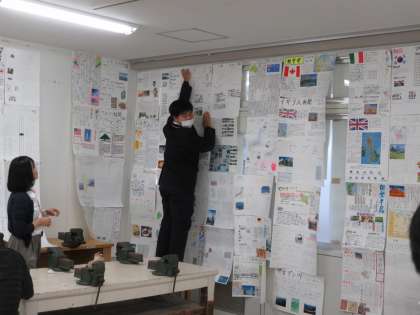 美術と社会の展示作業の様子です。