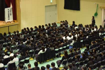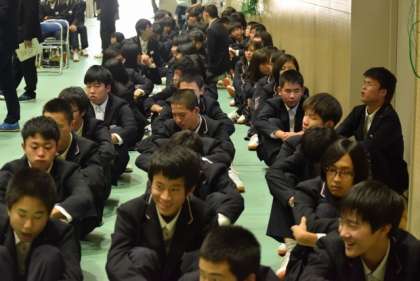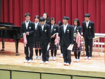 2枚目の写真は待機場所でコーラスの順番待ちをしている3年生の様子です。緊張しながら心の準備をしている様子が伝わってきます。