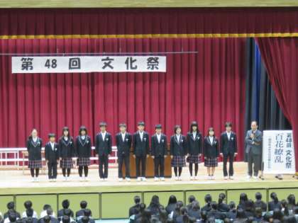 最後は、当日の進行だけでなく、オープニングや様々な準備を滞りなく進めてくれた前期と後期の生徒役員への全生徒からのねぎらいの拍手、そして、文化図書委員会の副委員長の閉会の言葉で今年度の文化祭を終了しました。