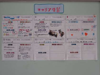 4階の各教室の授業の様子を参観していると、廊下の掲示板出前授業で学んだ内容をまとめたプリントも掲示されていました。