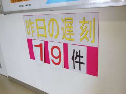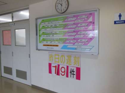 □指導部のアイデアで、遅刻生徒数を下足前に掲示しています