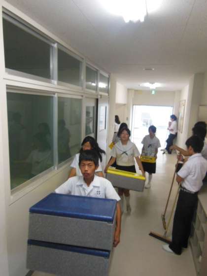 食べ終わった後の配膳室にお邪魔して、写真を撮りました。
