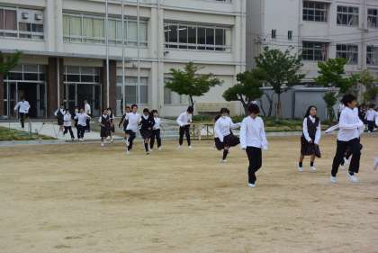 試験終了後に地震を想定し避難訓練を行いました。まだまだ課題もありますが、グランドに出てから走ったり、素早く整列して座るなど素晴らしい光景も見られます。
