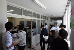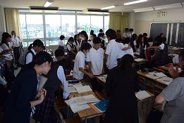 立ち歩いているように見える写真はお互いのまとめた内容を確認するために動いている姿です。この後、良いまとめをみんなで確認しての授業になっています。