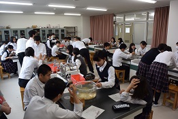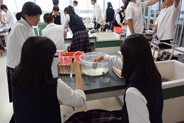 3年生の理科の実験を行っているところです。さすがに3年生の授業は落ち着いて行われています。
