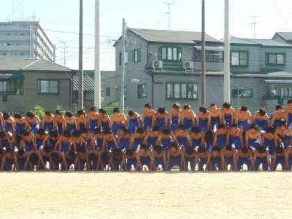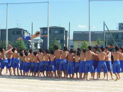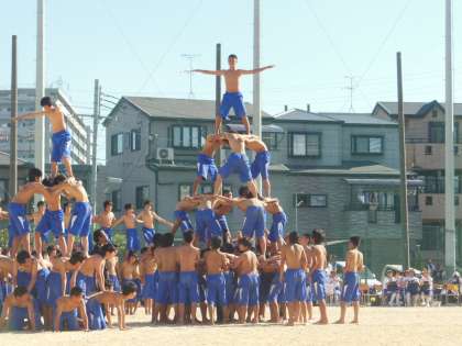 男子の組体。最初はなんともぴりっとしなかった男子でしたが、徐々に本番に近づくにつれ、良い緊張感が生まれ始めました。