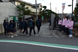 12月5日朝早くから、民生児童委員さんやPTA役員の方、市の地域担当の方に参加していただき「あいさつ運動」が行われました。