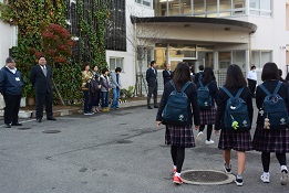 毎月実施し、この日はたくさんのあいさつが交わされます。1日が気持ちよく始められる素晴らしい取組です。この日だけでなく、いつでも色々なところで挨拶してください。