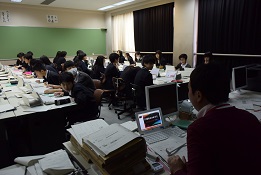 写真は1年の社会、3年の特活で進路関係について、2年の技術では職場体験についてのプレゼンテーションの資料を作成しています。