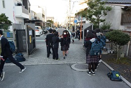 12月13日朝の校門では恒例のサンドイッチ・ハイタッチ挨拶運動が行われています。今日も一日気持ちのいいあいさつから始まっています。