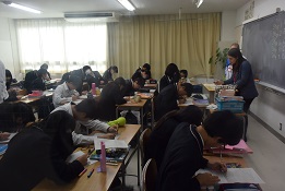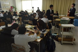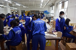 技術では本立てを作成。理科の時間は音についての学習でギターが登場しています。英語ではAETの先生が楽しい授業を展開しています。