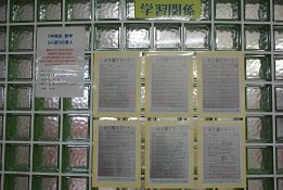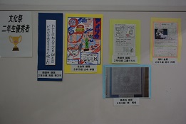 2年生のフロアには「2学期末数学ふり返りの達人」のふり返り用紙と「文化祭二年生優秀者」の作品が掲示されています。それぞれすばらしい内容になっていますので参考にしてください。