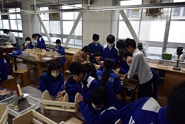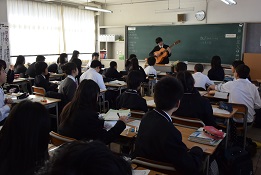 ギターを弾いていますが理科の「音」についての授業と技術でのブックスタンド作成、体育の持久走の授業風景です。