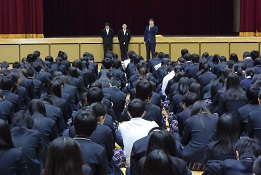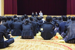 それぞれのクラスの学級委員から2学期の反省と3学期に向けての話がありました。その後、進路指導主事や学年主任からの話があり、3年生にとっては進路に向けて大切な冬休みになることを感じたと思います。