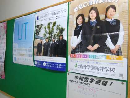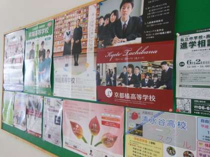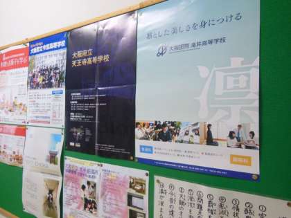 3年生の掲示板には、高等学校の案内が一杯貼っています。