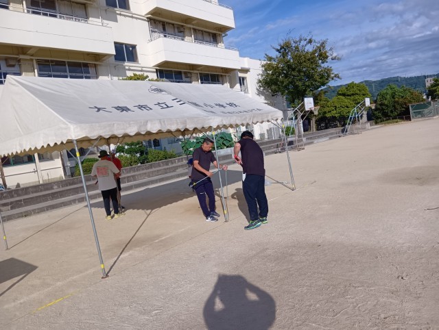 22日の月曜日にテントを立てたり、ポイントを打ったりする作業をみんなで行いました。