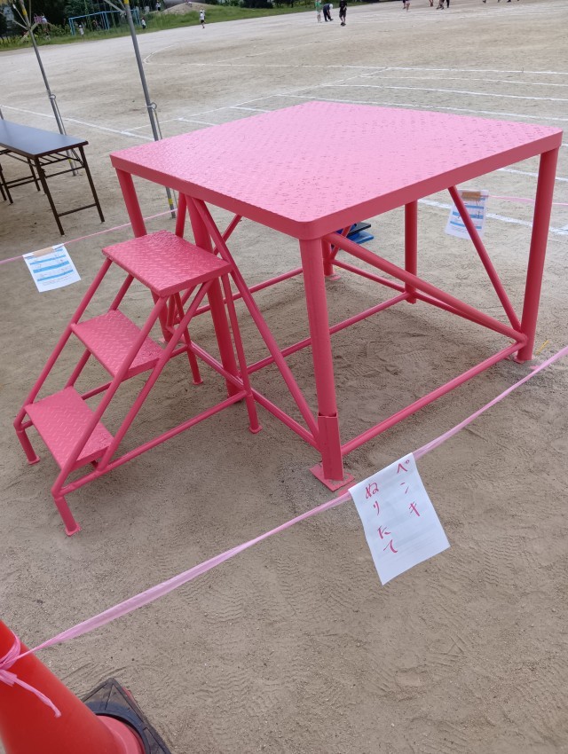 錆びてペンキがはがれていた朝礼台を、かわいらしいピンク色に塗りなおしてくださいました。