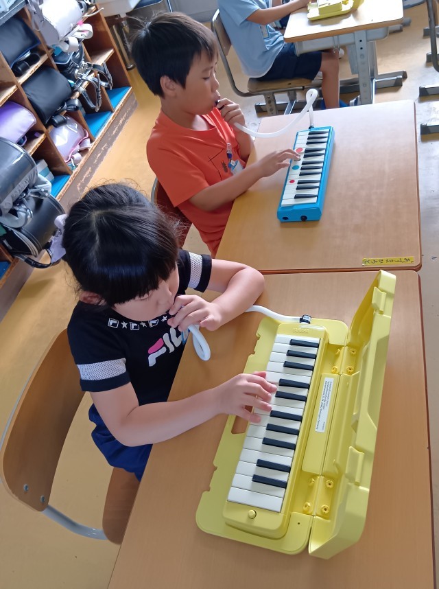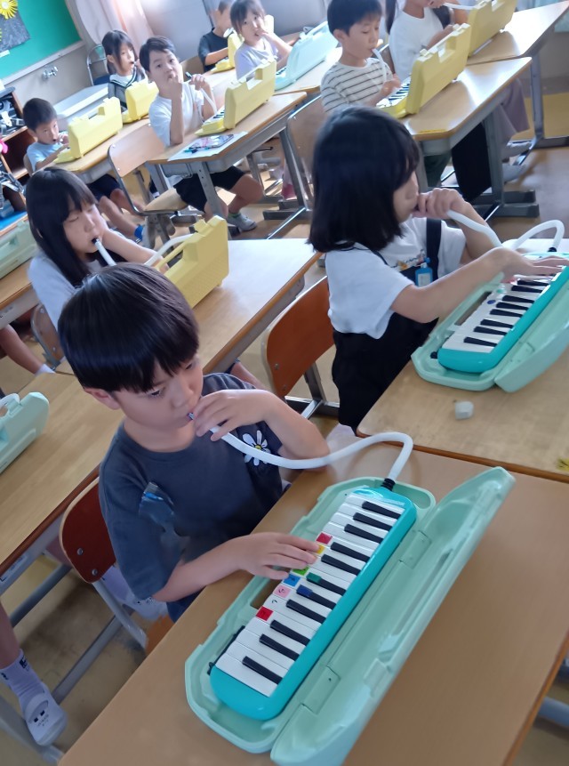 1年生の教室から鍵盤ハーモニカの演!奏が聞こえてきました。
