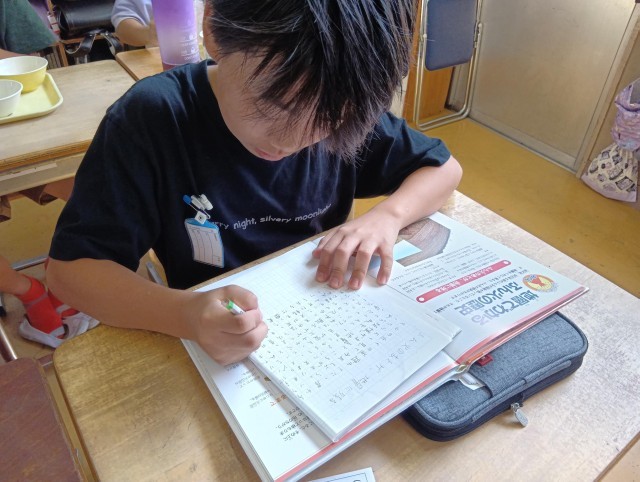 食べ終わると、本を読んでしらべたことをノートにまとめたり、タブレットで学習したり…と自主学習をしています。