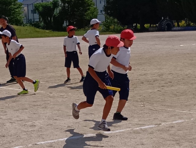 リレーでは、暑い中でしたが、みんな全力疾走です。
