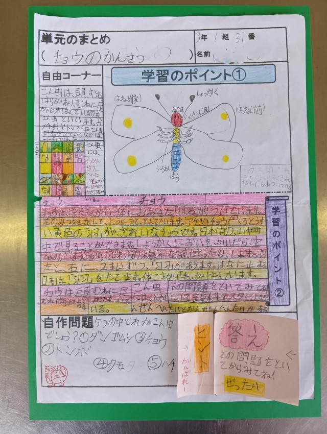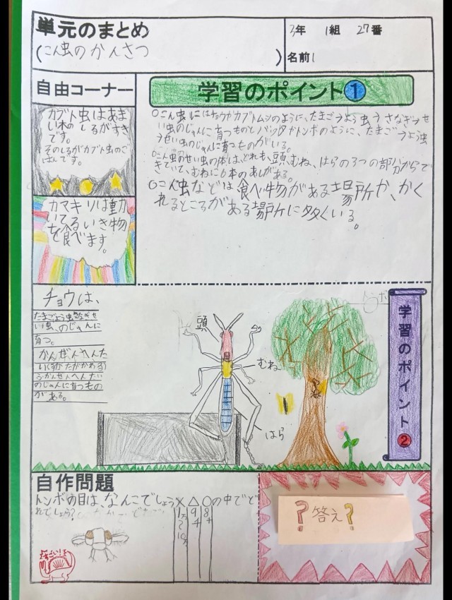 ふせんを使って答えを隠して楽しませるくふうもすばらしいです。