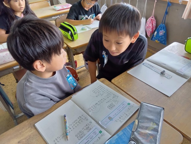 絵やことばで表す子、図を使って考える子など自分の考えをしっかり言語化し、正しい計算のしかたを考えることができました。