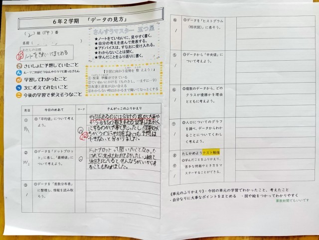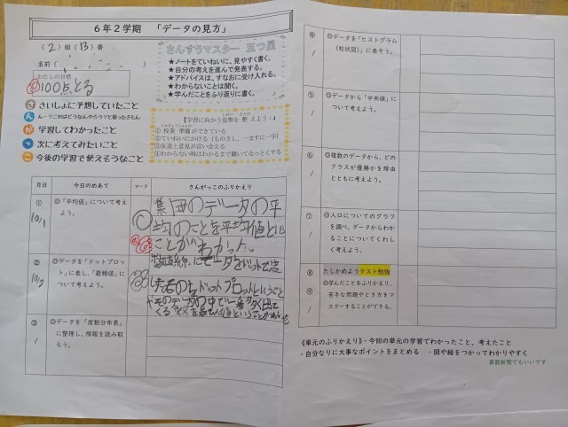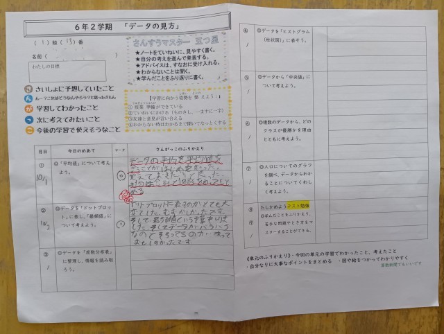 6年生の算数科ではあゆみカードをいうワークシートを使っています。