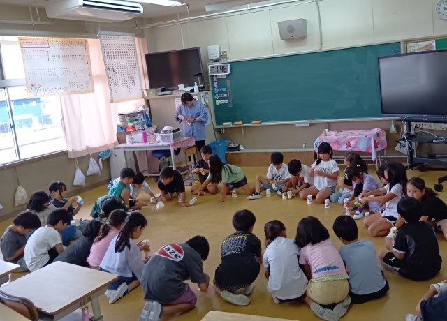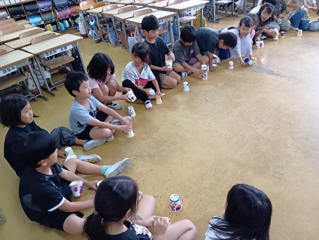 2年生が輪になって座っています。