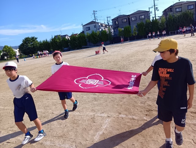 プラカードの係や校旗を持つ係は、姿勢や歩き方にも気をつけます。