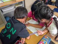 3年生の理科では、かげができるとき太陽がどこにあるかを遮光板を使って確認していました。